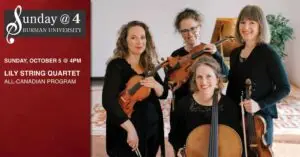 The Lily Quartet is an innovative, professional string quartet based in Alberta. This year’s project is titled “Four Strong Winds” and represents composers from four cities in Alberta as well