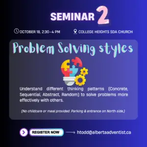 Have you ever wondered why people approach problems so differently? Join us on Sabbath, October 18, from 2:30–4:00 PM at College Heights SDA Church for an engaging seminar on problem-solving