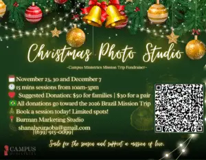 The Campus Ministries Student Missions Team invites you to join our Christmas Photo Studio Fundraiser! 📅 Dates: Sunday, November 30 & Sunday, December 7📍 Location: Burman University Marketing and Enrolment