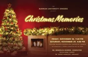 The Burman University Singers warmly invite you to this year’s annual Christmas Vespers concert, Christmas Memories. This cherished seasonal event will feature two performances at the College Heights Church: Joining