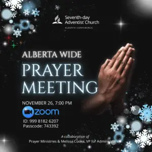 Join believers from across Alberta for a special evening of united prayer and spiritual encouragement. November 26, 7:00 PM On ZoomID: 999 8182 6207Passcode: 743392 For the meeting link click
