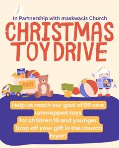 We’re excited to partner with the Maskwacis Church to collect 50 new toys for children ages 10 and under. If you’d like to take part, please drop your unwrapped gift