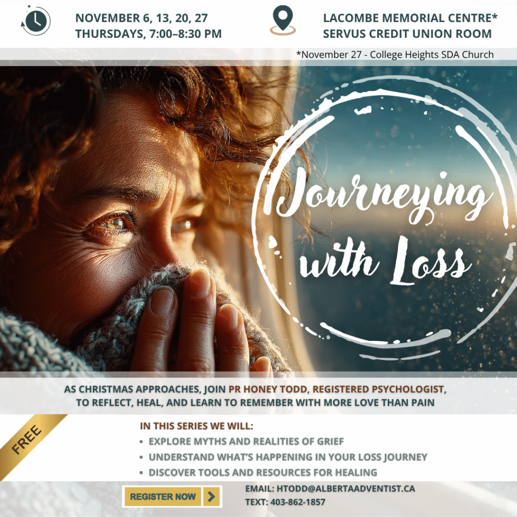 Thursdays, November 6, 13, 20, 277:00–8:30 PM As the Christmas season approaches, take time to reflect on your journey through loss.This four-week series will help you: Locations: Facilitator: Register: 📱 Text: 403-862-1857📧 Email: [email protected]