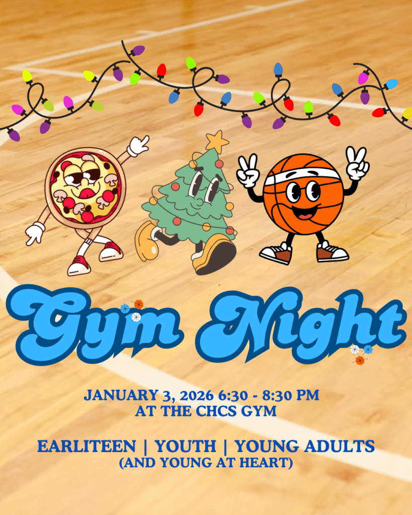 YOUTH & YOUNG ADULTS GYM NIGHT: All youth and young adults are invited to a Gym Night at CHCS on Saturday evening, January 3, from 6:30–8:30 PM. Come for a fun evening of game and fellowship—bring a friend and your energy!