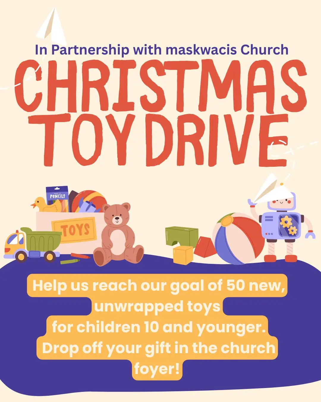 We’re excited to partner with the Maskwacis Church to collect 50 new toys for children ages 10 and under. If you’d like to take part, please drop your unwrapped gift in the donation box located in the foyer by December 16.