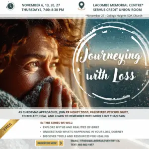 Thursdays, November 6, 13, 20, 277:00–8:30 PM As the Christmas season approaches, take time to reflect on your journey through loss.This four-week series will help you: Locations: Facilitator: Register: 📱